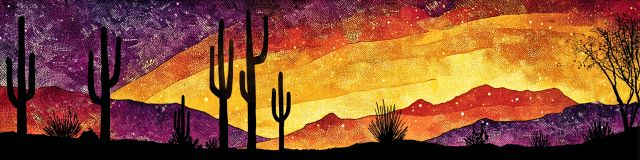 Vibrant Sunset Over Mesa: A Canvas of Colorful Desert Silhouettes