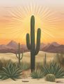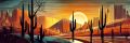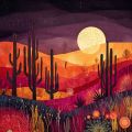 Majestic Desert Sunrise Over Whimsical Mosaic Cactus Art
