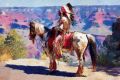 Vibrant Canvas Print of a Native American Rider at Grand Canyon