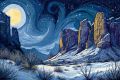 Majestic Mesa Night: A Surreal Canvas of Moonlit Desolation