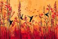 Crimson Twilight: Birds in Flight Among Red Wildflowers Canvas Art