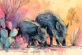 Serene Javelinas in Vibrant Desert Setting: Artistic Canyon Oasis