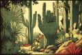 Desert Wanderers Amidst Cacti: A Vivid Watercolor Canvas