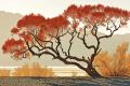 Twilight Embrace: A Majestic Red Tree in the Heart of Mesa, Arizona