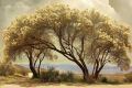 Majestic Desert Trees Blossoming Under Cloudy Sky