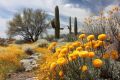 Vibrant Desert Blooms and Majestic Saguaro Cacti in Mesa, Arizona