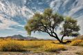 Majestic Mesquite Tree Amidst Vibrant Wildflowers in Mesa, AZ