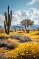 Vibrant Spring Colors Bloom Beneath Mesa's Majestic Saguaro Cacti