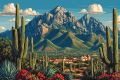 Majestic Mountain Peaks and Flourishing Desert Flora in Mesa, Arizona