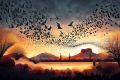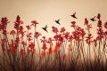 Mesmerizing Mesa Sunset: Birds in Flight and Crimson Flora