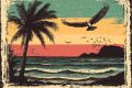 Mesmerizing Sunset Over Tropical Beach with Flying Seagull