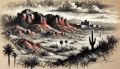 Evocative Charcoal Drawing of Mesa, Arizona's Iconic Red Rock Landscape