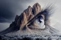 Surreal Vision: Giant Eye Embedded in Mesa's Rocky Landscape