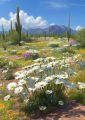 Blooming Daisies and Majestic Cacti Under Arizona's Sky
