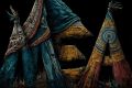 Vibrant Cultural Fabric Tepees Under Starry Night Sky