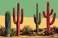 Surreal Desert Dreamscape with Vibrant Cacti and Sunset Hues