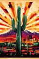 Vibrant Mesa Arizona Skyline with Iconic Cactus Silhouette