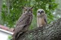 Majestic Great Horned Owls in Autumn - A Family Portrait