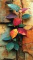 Vibrant Leaves Clinging to Textured Rock Wall in Mesa, Arizona