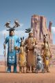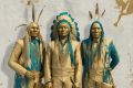 Golden Native American Chiefs in Traditional Attire on Canvas