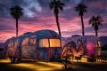 Vibrant Artistry on Vintage Trailers under Twilight Skies