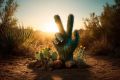 Surreal Desert Landscape with Oversized Glove Among Cacti