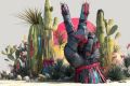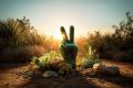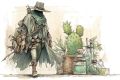 Mysterious Desert Wanderer Beside Cacti and Desert Flora
