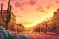 Vibrant Ode to Mesa: Stylized Western Character Amidst Arizona Scenery