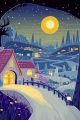 Enchanting Nighttime Landscape of a Cozy Hillside Village under Stars