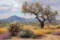 Enchanting Pointillist Vista of Mesa, Arizona with Native Flora and Fauna
