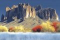 Majestic Snow-Capped Peaks Amidst Autumn-Touched Mesa Landscape