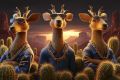 Stylishly Dressed Deer Trio Poses in Arizona Desert Sunset