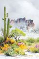 Vibrant Canvas Art of Mesa, AZ Mountainous Landscape and Cacti