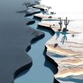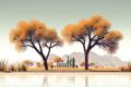 Stylized Artistic Render of Mesa, Arizona with Reflective Waterscape