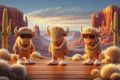 Stylish Yaks Dressed in Urban Attire Under Arizona’s Fiery Sky