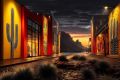 Surreal Nighttime Streetscape in Mesa with Vibrant Desert Flora