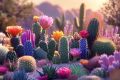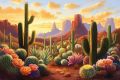 Vibrant Dawn Blooms: Desert Cacti Basking in Mesa Morning Light