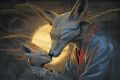 Tender Moment Between Foxes Against Illuminated Backdrop