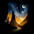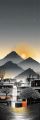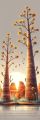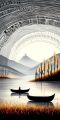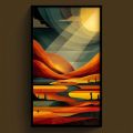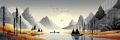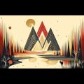 Serene Lakeside Sunset Captured in Stylized Graphic Artwork