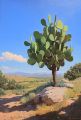 Sunlit Prickly Pear Cactus with Expansive Mesa Arizona Landscape