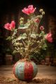 Vibrant Hibiscus Blooming from a Weathered Globe Planter