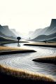 Serene Stream Winding Through a Golden Vista Art Canvas