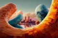Surreal Digital Artwork of Stylized Insects on a Mystical Backdrop