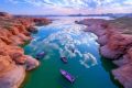 Serene Dusk at Lake Powell with Floating Boats and Reflections