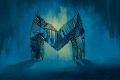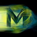 Vibrant Green and Blue Swirls around Letter M on Canvas