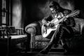 Serenade of Shadows: A Guitarist Immersed in Melody in Mesa