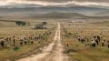 Snow-Capped Symmetry: Two Bikers approach Majestic Mesa Peaks