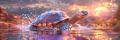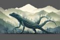Stylized Desert Runner: A Lizard Artwork Amidst Mountain Background