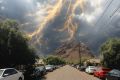 Dramatic Skies Over Mesa: Lightning Strikes Near Mountain Landscape
