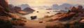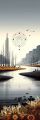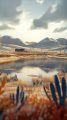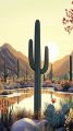 Serene Lakeside Morning in Stylized Mesa, Arizona Landscape